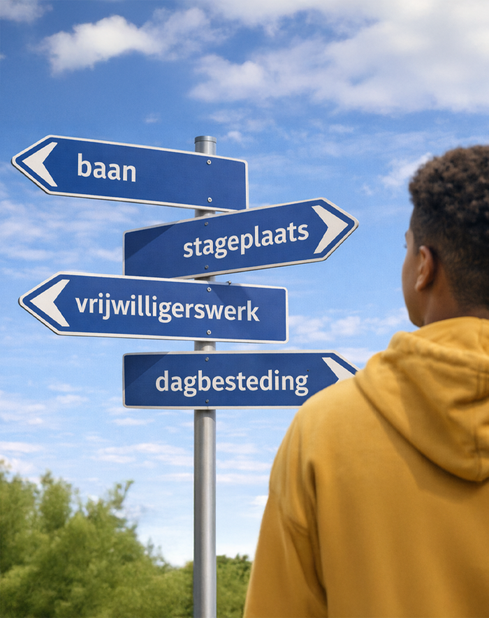 Daarnaast zetten we ons netwerk in om jou verder te helpen met je toekomstplannen. Denk aan het vinden van een baan, stageplaats, vrijwilligerswerk of dagbesteding.