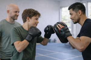 Een actieve behandelvorm waarbij psychologische behandeling wordt gecombineerd met boksoefeningen. De jongere werkt hierbij samen met de behandelaar én een professionele kickbokser. Door beweging, fysieke oefeningen en reflectie worden emoties beter voelbaar en hanteerbaar, ontstaat meer zelfinzicht en wordt gewerkt aan grenzen, zelfvertrouwen en spanningregulatie.
